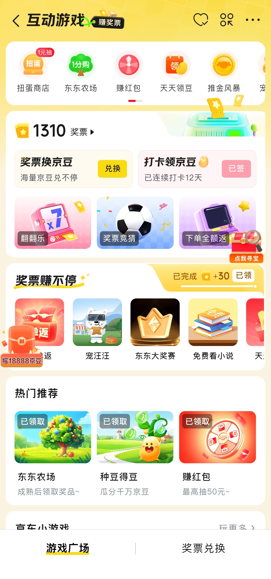 赚红包,50豆。也可以从上面的互动游戏进入。但是千万不要从首页进入,从首页进入就无法触发他送京豆。