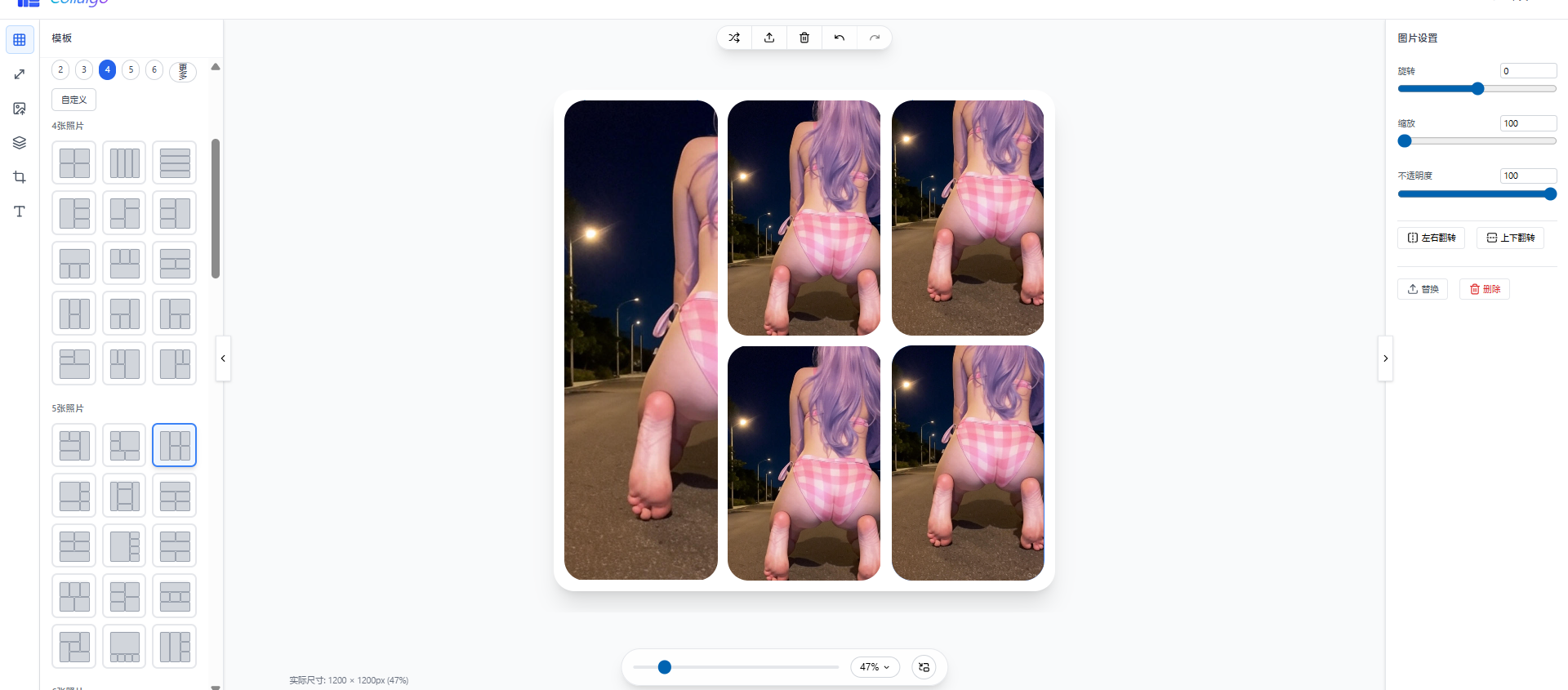 自定义行列数和间距,并选择纯色或图片背景。使用 9 切片缩放框架增强设计,并进行旋转、翻转、透明度等精确调整。