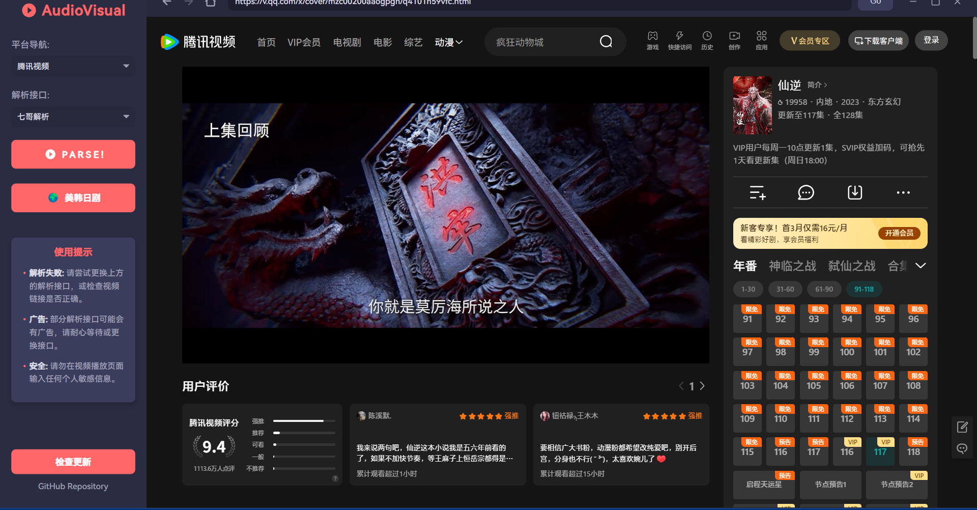 🎯 多平台支持 - 支持腾讯视频、爱奇艺、优酷、哔哩哔哩、芒果TV等主流视频平台🔧 多解析接口 - 内置多个高质量解析接口,确保解析成功率🎨 现代化界面 - 简洁美观的用户界面,支持主题切换🚀 自动更新 - 内置自动更新功能,始终保持最新版本💻 跨平台 - 基于Electron开发,支持Windows、macOS、Linux