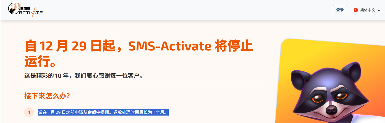 短信接码站 sms-activate 停止运营,有余额的可以去申请退款