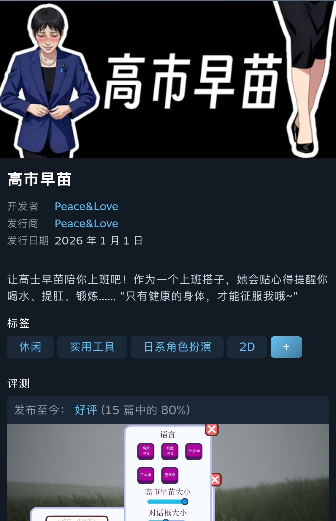让高士早苗陪你上班吧!作为一个上班搭子,她会贴心得提醒你喝水、提肛、锻炼...... "只有健康的身体,才能征服我哦~"