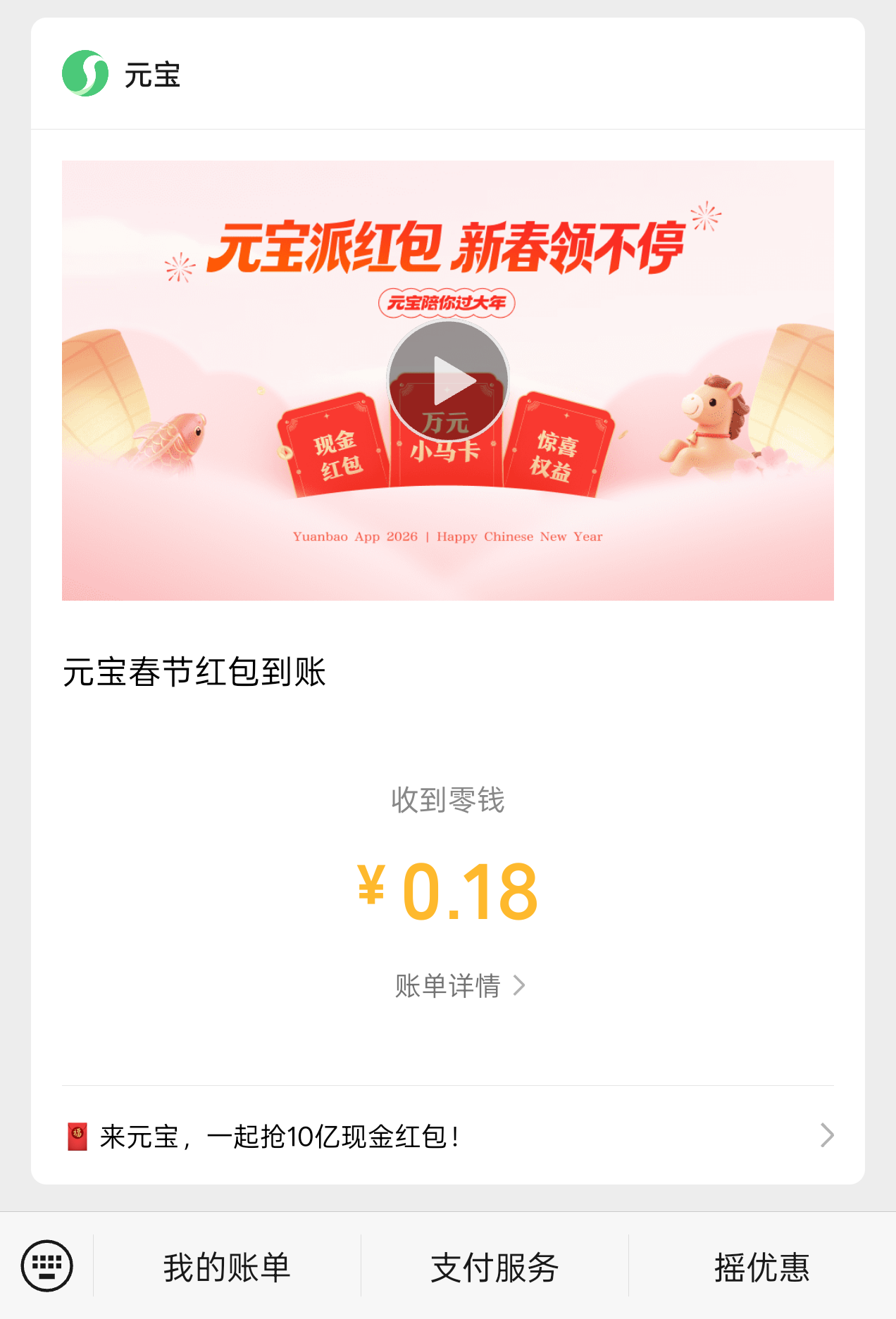 元宝 0.18 口令红包,直接提现微信