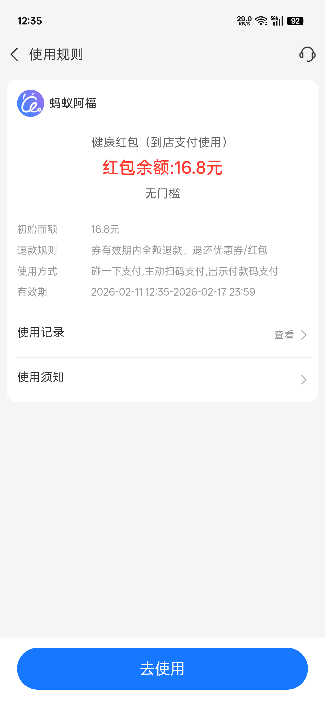 支付宝下载蚂蚁阿福,可得 16.8 到店支付红包