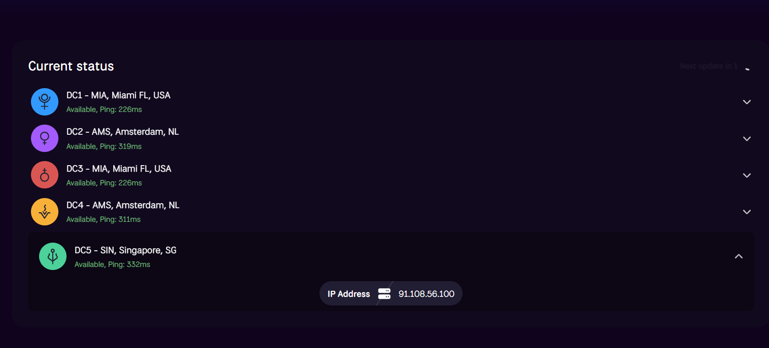 一个查看 电报dc数据中心,在线状态的网站