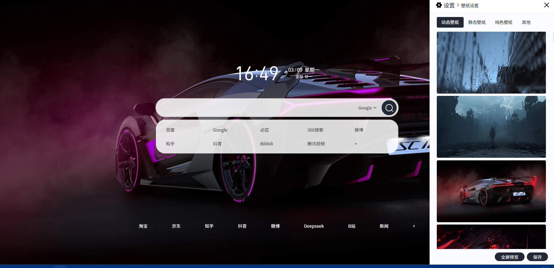 一个挺好看的浏览器新标签页,支持动态壁纸